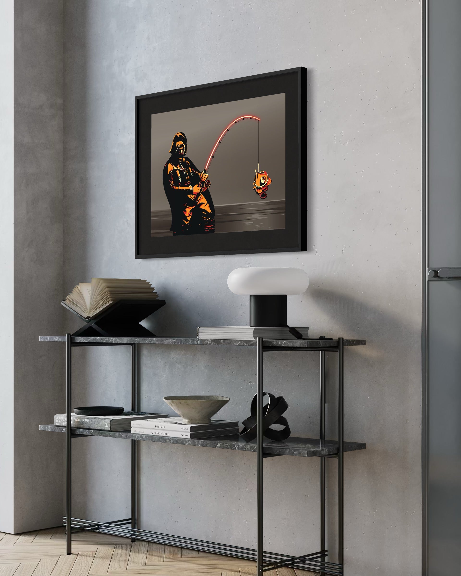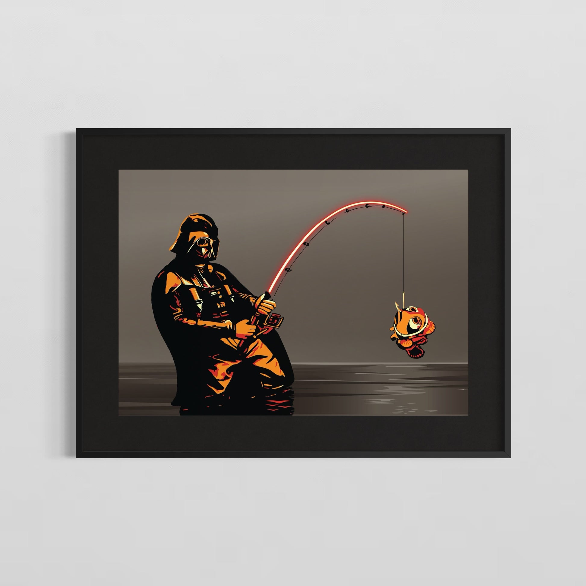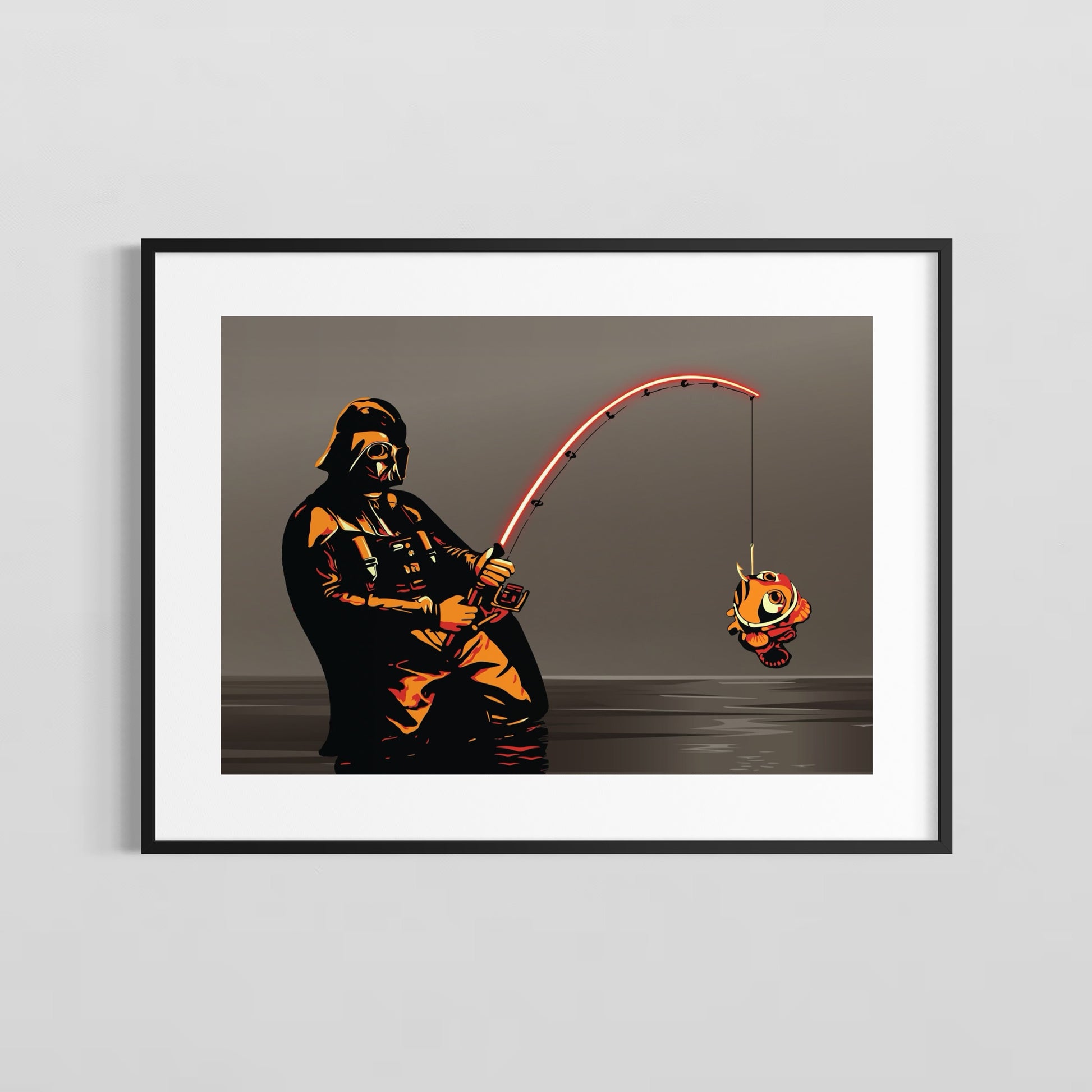 An iconic, dark-clad figure wades into the river in waders and uses his lightsaber as a fishing rod – and has literally found Nemo.