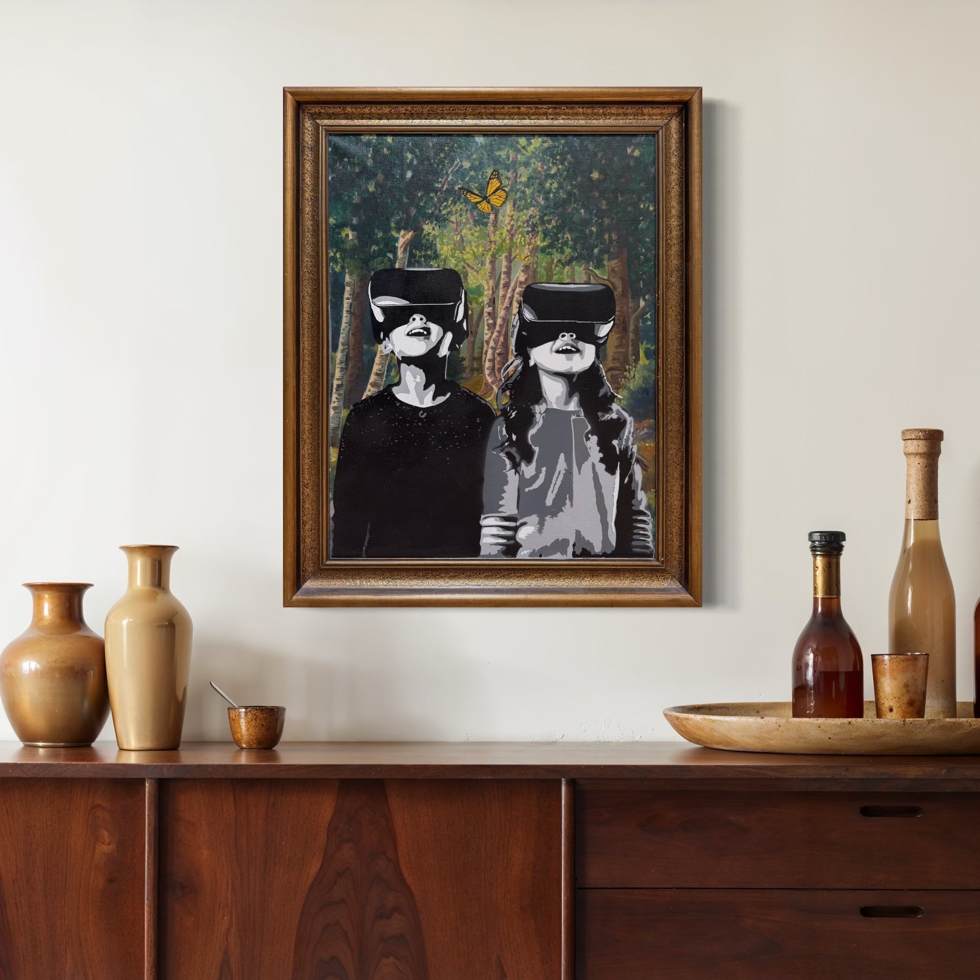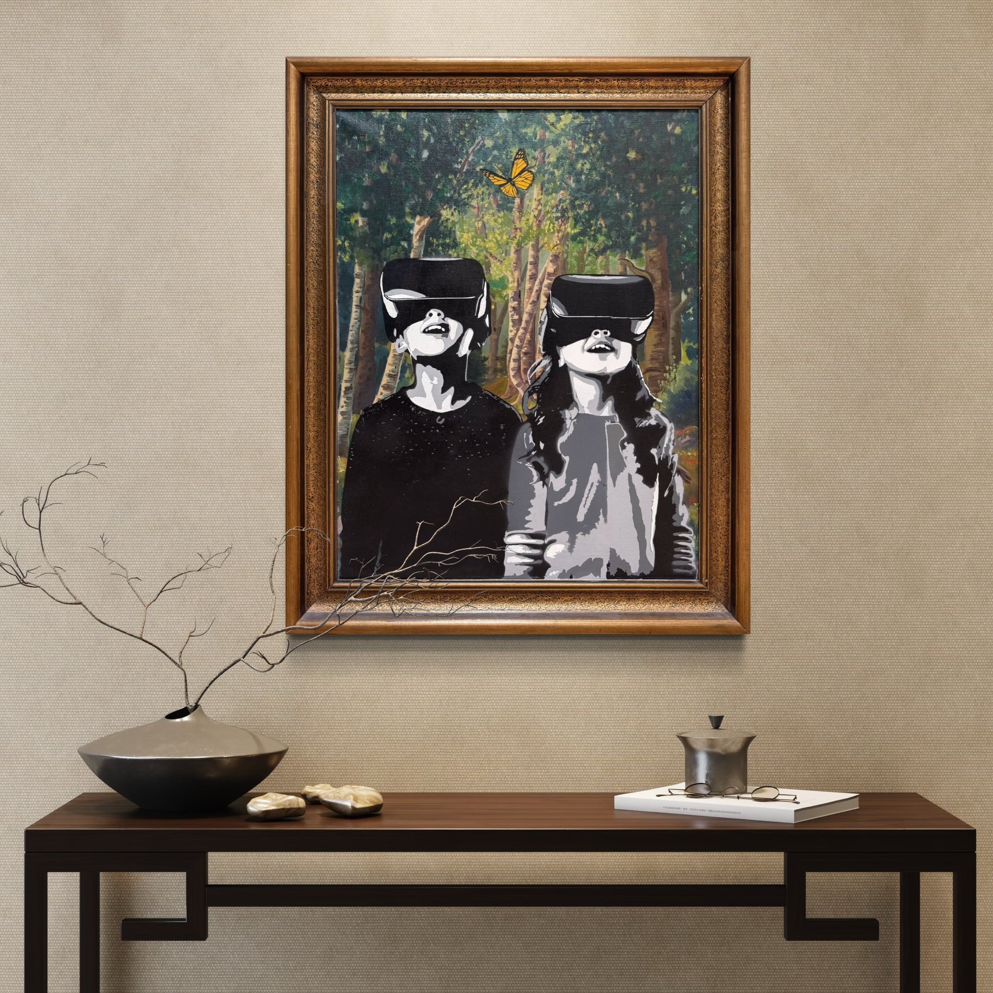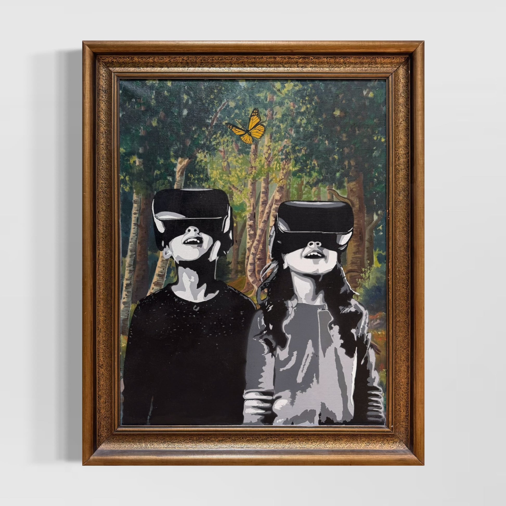 Ved å manipulere et eldre landskapsmaleri med moderne sprayteknikk, oppstår en kontrast mellom fortid og fremtid. Naturen som en gang var selvsagt, blir en bakgrunn for et nytt lag av virkelighet. Men hva er egentlig ekte? Og hvem bestemmer hva som er verdt å se?